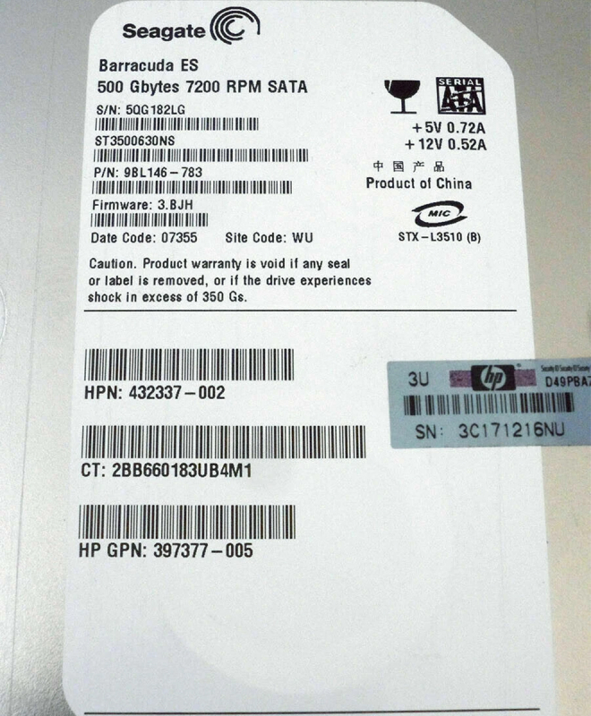 Жесткий диск HP 432337-002 500Gb 7200 SATA 3.5" HDD