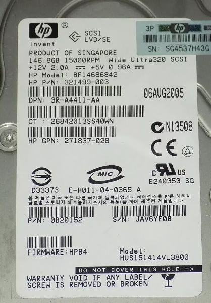 Жесткий диск HP 321499-003 146,8Gb U320SCSI 3.5" HDD