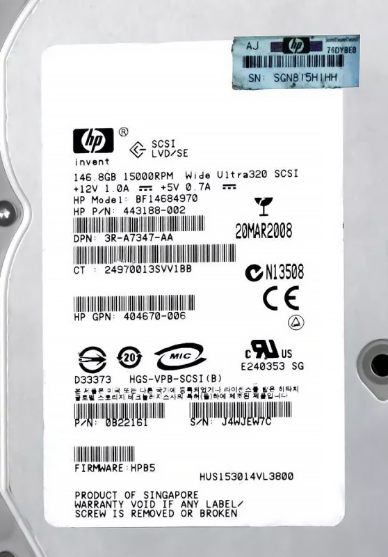Жесткий диск HP BF14684970 146,8Gb U320SCSI 3.5" HDD