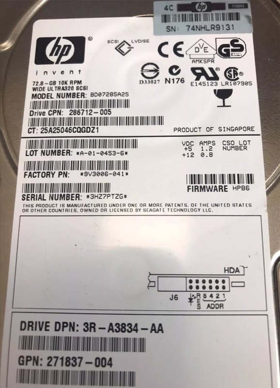 Жесткий диск HP BD07285A25 72,8Gb U320SCSI 3.5" HDD