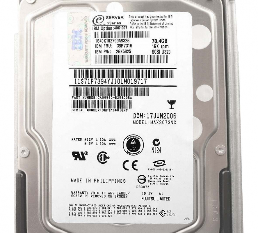 Жесткий диск IBM 40K1027 73,4Gb 15000 U320SCSI 3.5" HDD