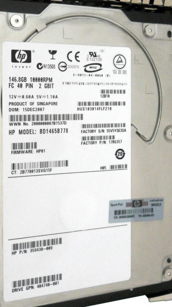 Жесткий диск HP BD1465B778 146,8Gb Fibre Channel 3,5" HDD