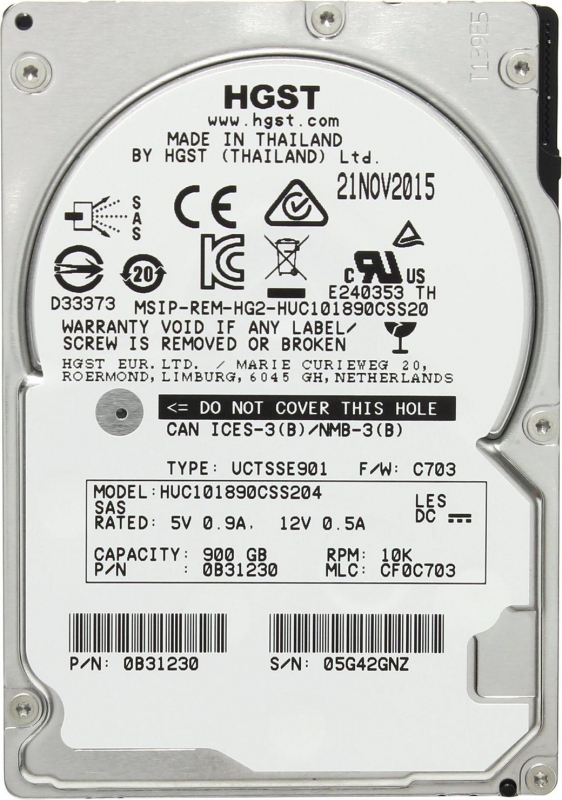 Жесткий диск HGST 0B31230 900Gb 10520 SAS 2,5" HDD