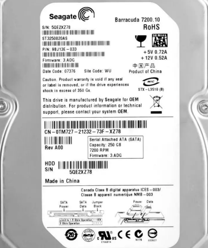 Жесткий диск Dell TM727 250Gb SATAII 3,5" HDD