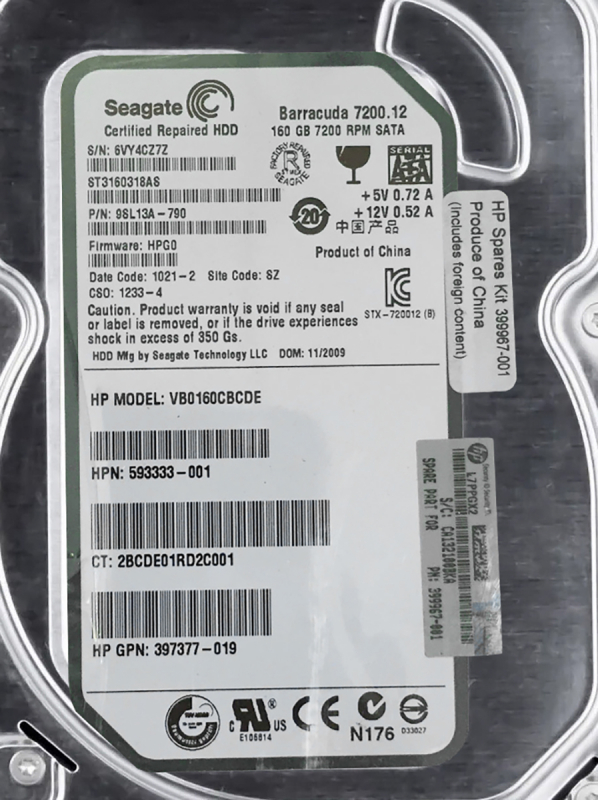 Жесткий диск HP VB0160CBCDE 160Gb SATAII 3,5" HDD