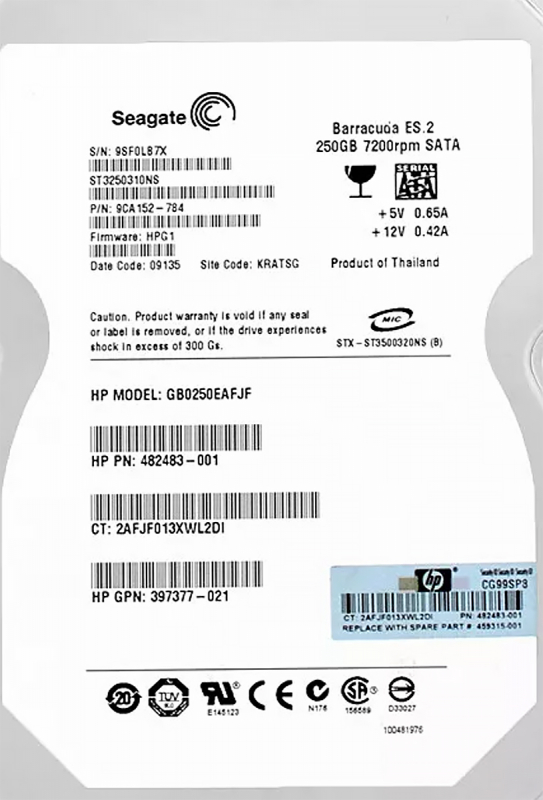 Жесткий диск HP GB0250EAFJF 250Gb SATAII 3,5" HDD