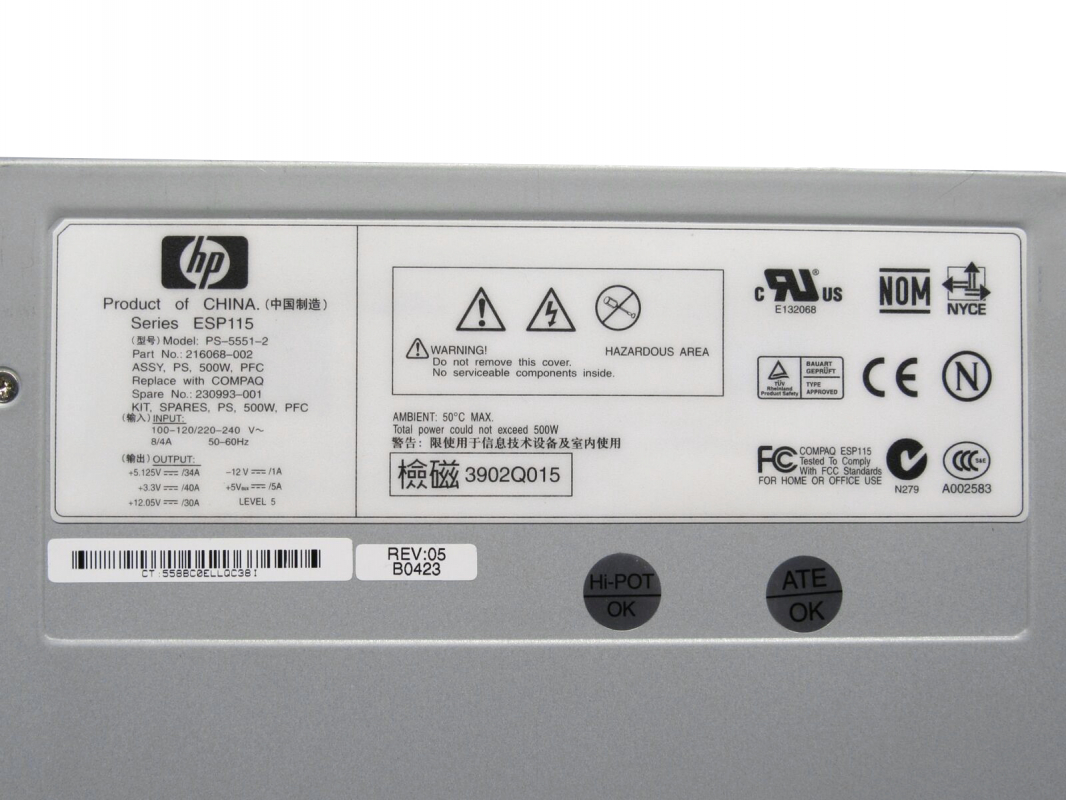 Резервный Блок Питания HP 230993-001 500W