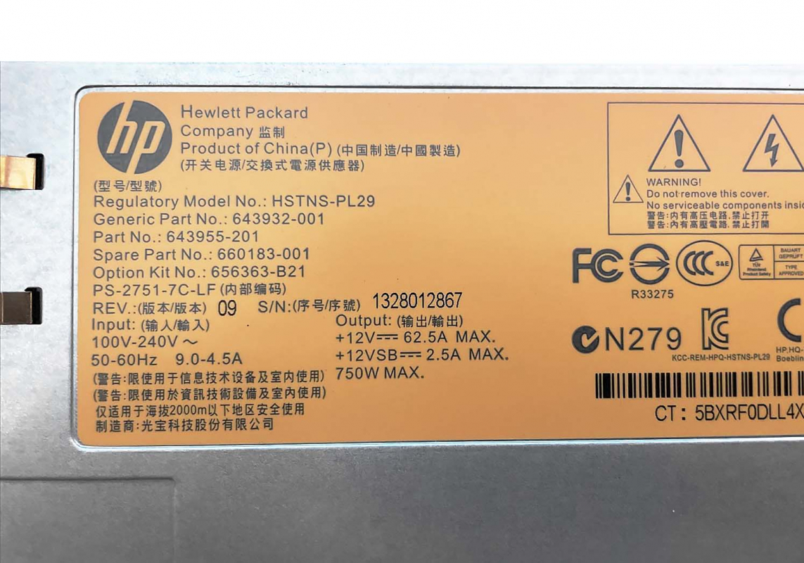 Резервный Блок Питания HP 643955-201 750W