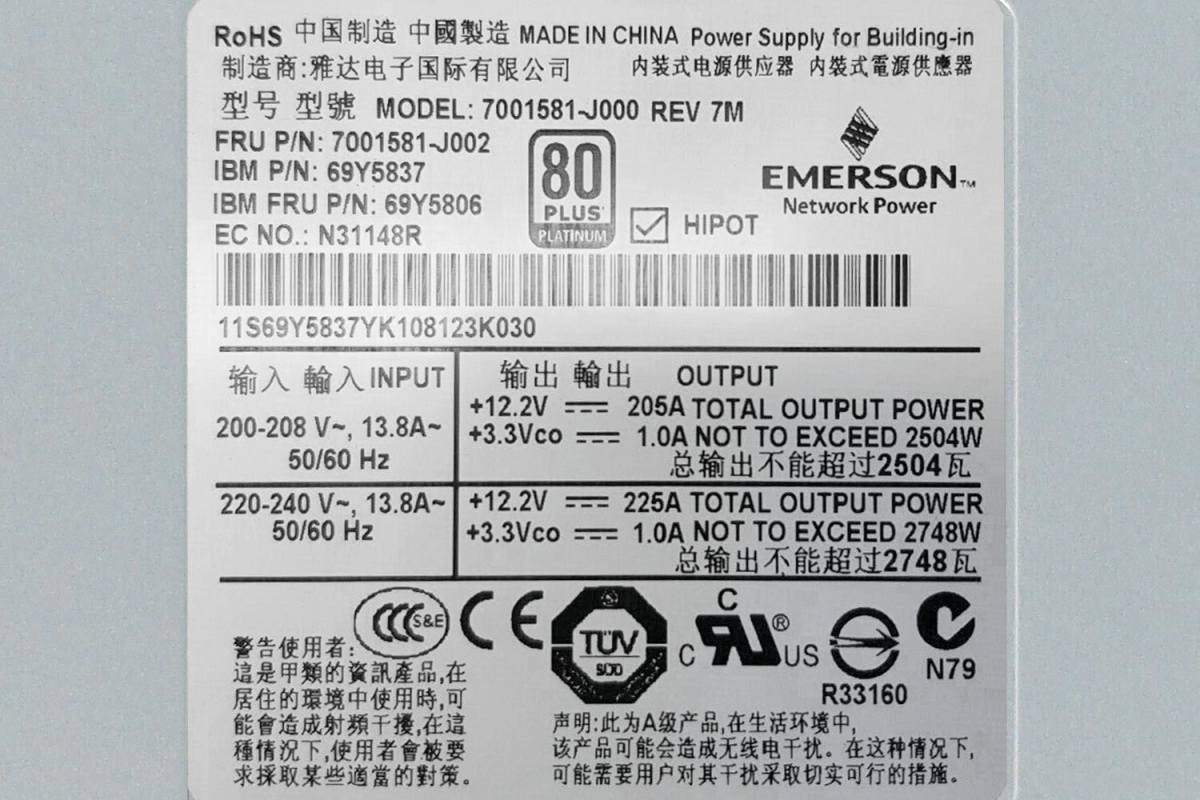 Резервный Блок Питания IBM 69Y5837 2500W