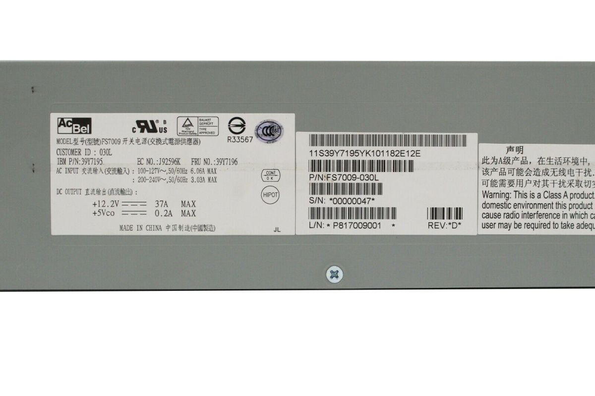 Резервный Блок Питания IBM 39Y7195 450W