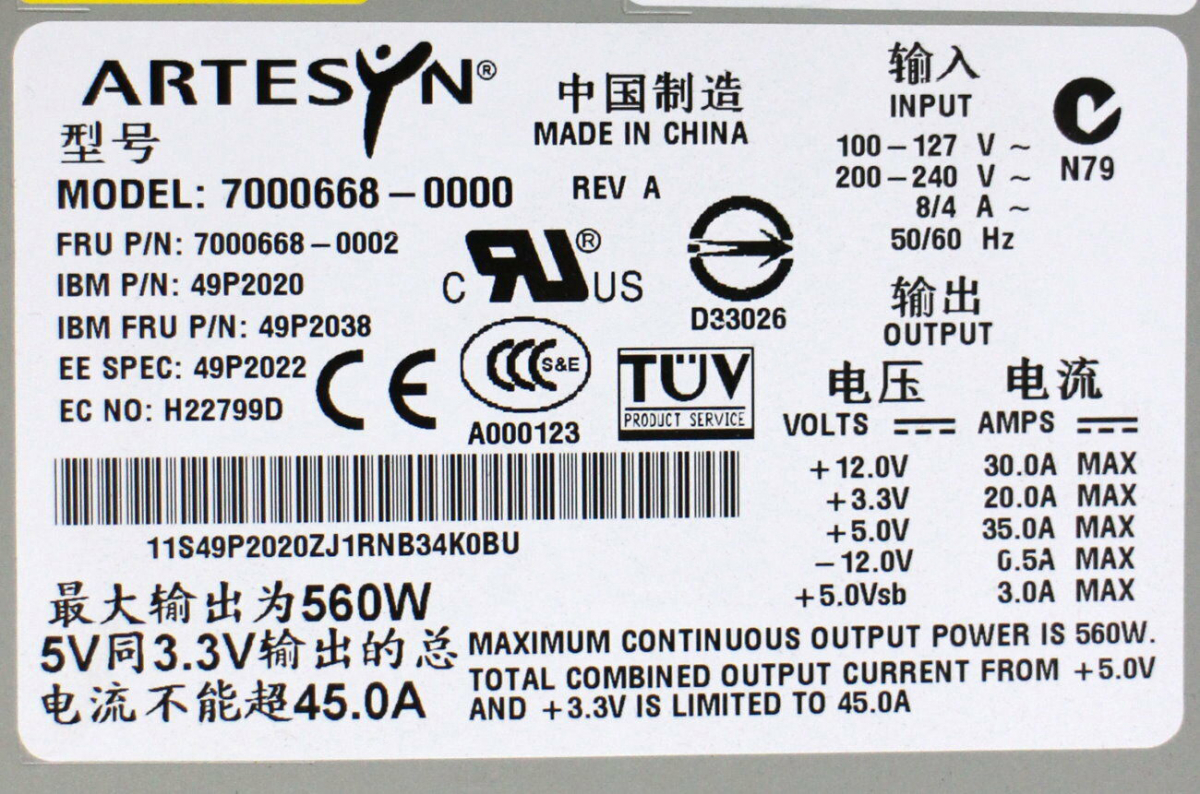 Резервный Блок Питания IBM 49P2022 560W