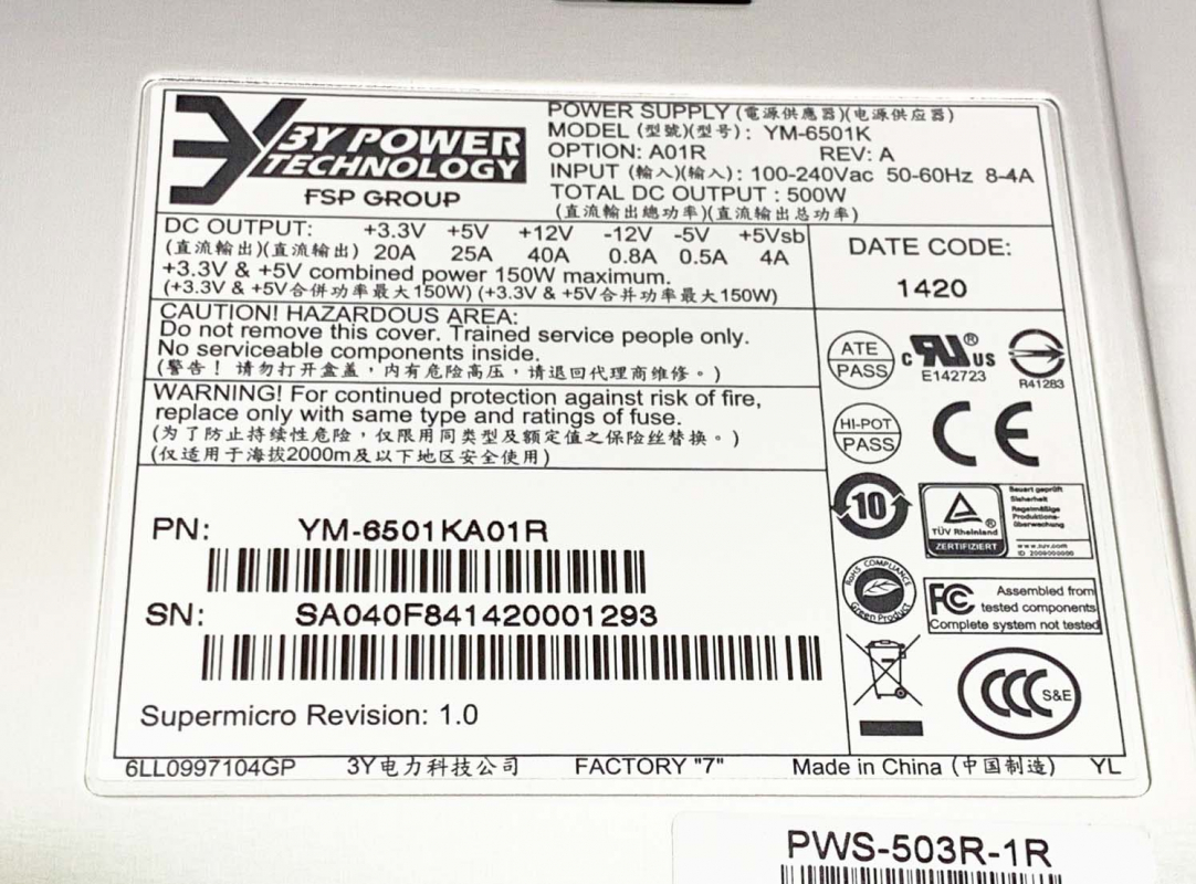 Резервный Блок Питания SuperMicro YM-6501KA01R 500W