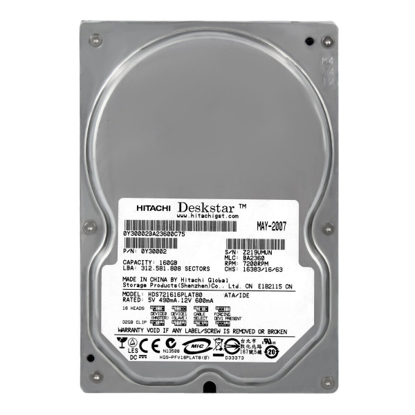 Жесткий диск Hitachi 0Y30002 160Gb 7200 IDE 3.5" HDD