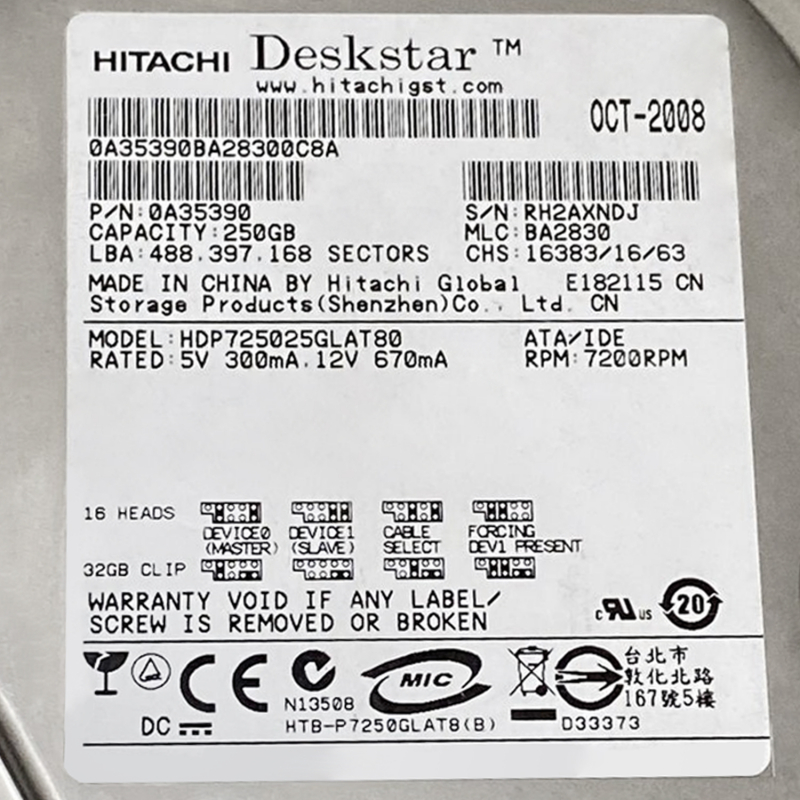 Жесткий диск Hitachi HDP725025GLAT80 250Gb 7200 IDE 3.5" HDD