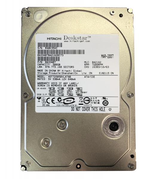 Жесткий диск Hitachi HDT725050VLAT80 500Gb 7200 IDE 3.5" HDD