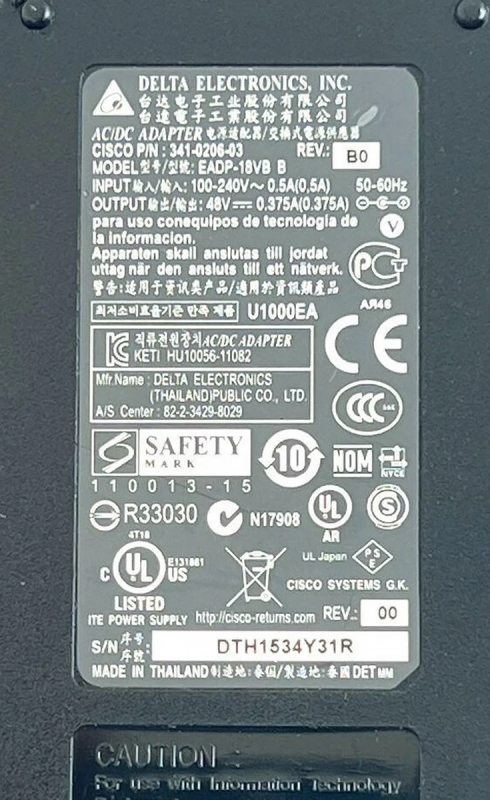 Блок Питания Cisco EADP-18VB B 48V 0,38A 18W