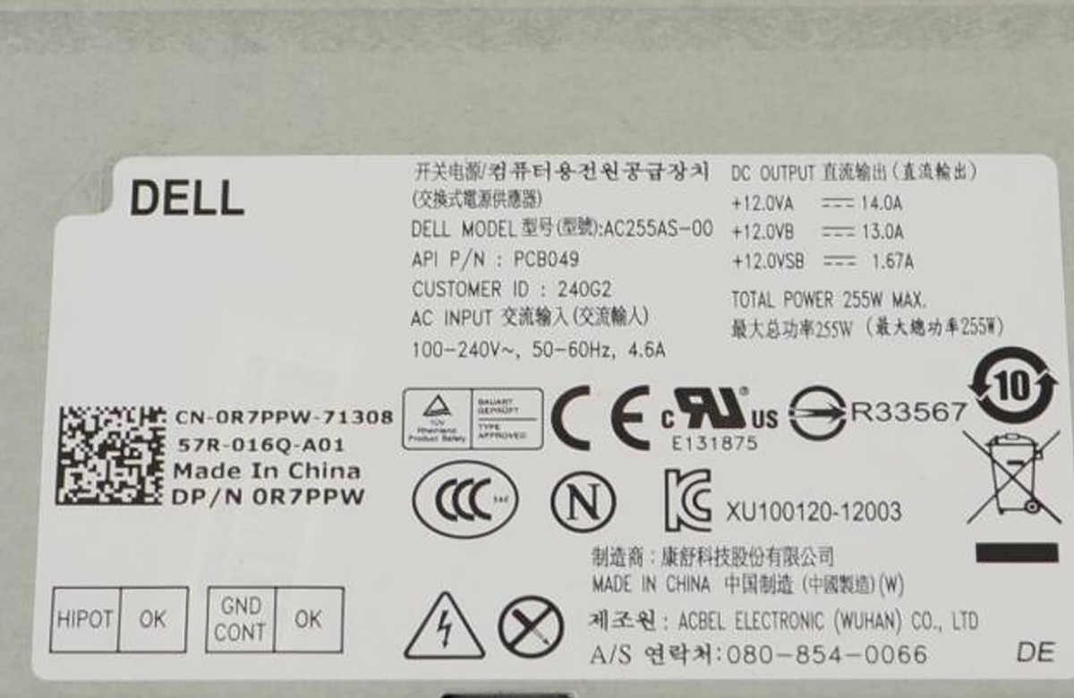 Блок Питания Dell 0R7PPW 255W