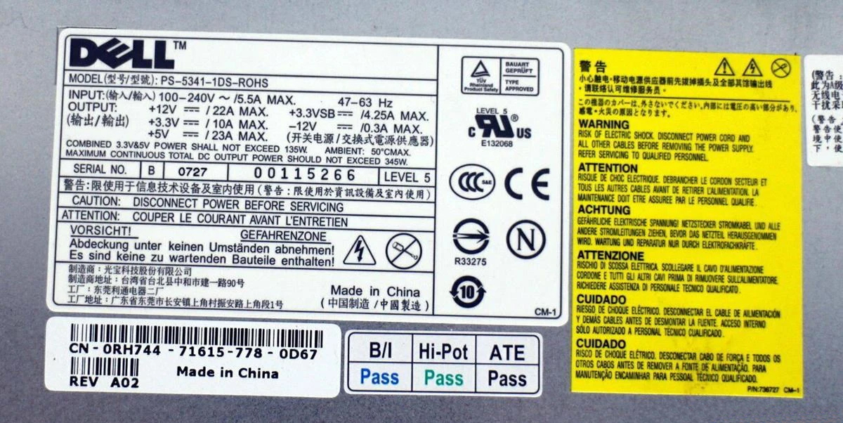 Блок Питания Dell 0RH744 345W