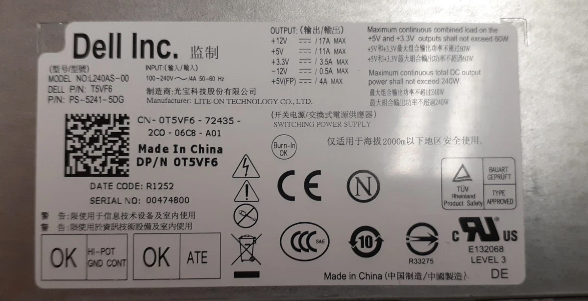 Блок Питания Dell 0T5VF6 240W