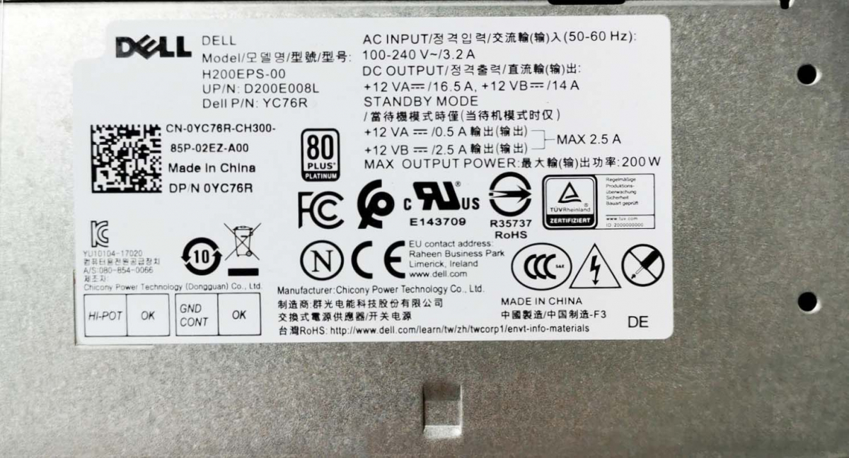 Блок питания Dell 0YC76R 200W