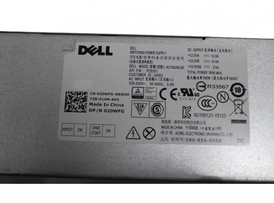 Блок питания Dell 20WFG 180W