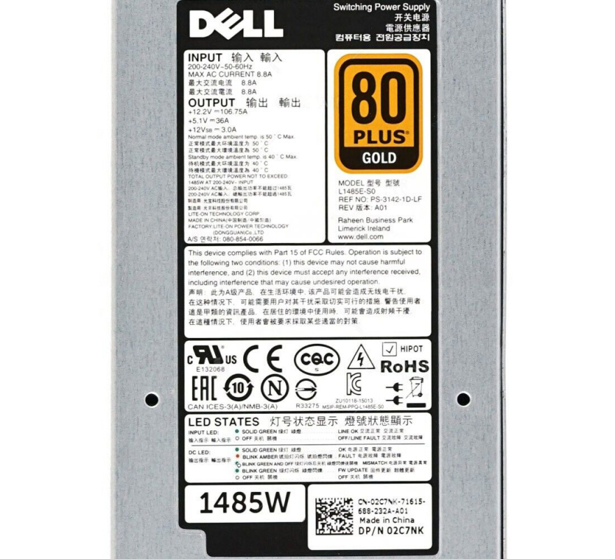 Блок Питания Dell 2C7NK 1485W