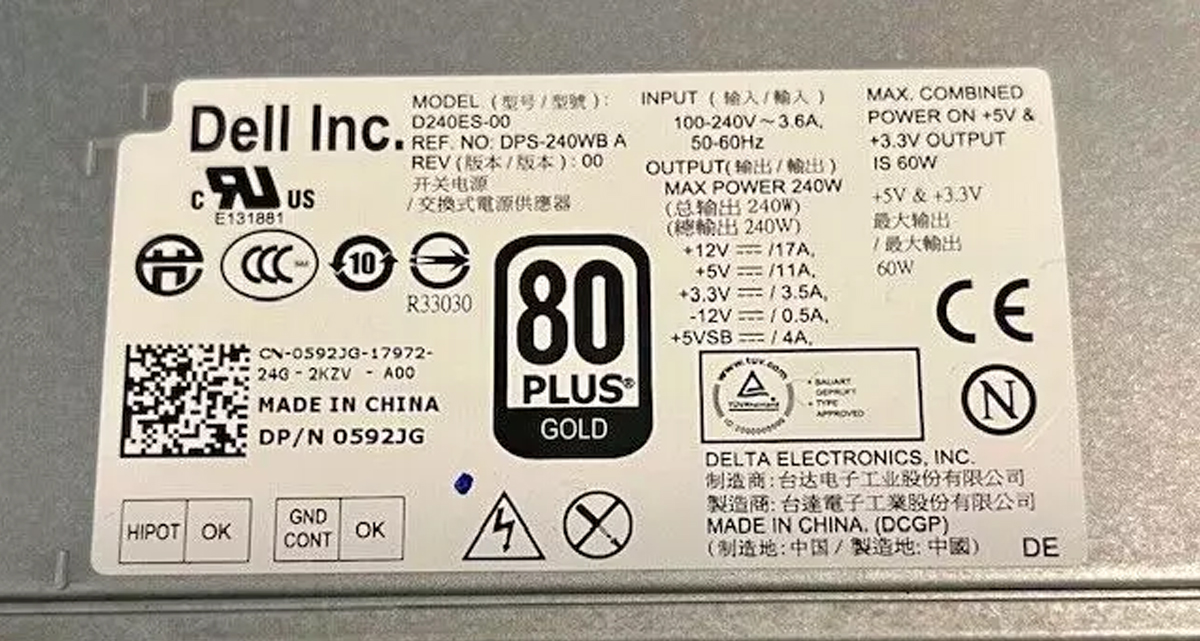 Блок Питания Dell 592JG 240W
