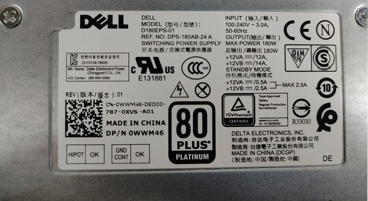 Блок Питания Dell D180EPS-01 180W