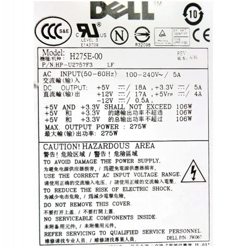 Блок Питания Dell HP-U2757F3 275W