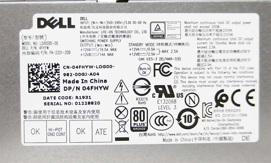 Блок питания Dell 04FHYW 200W