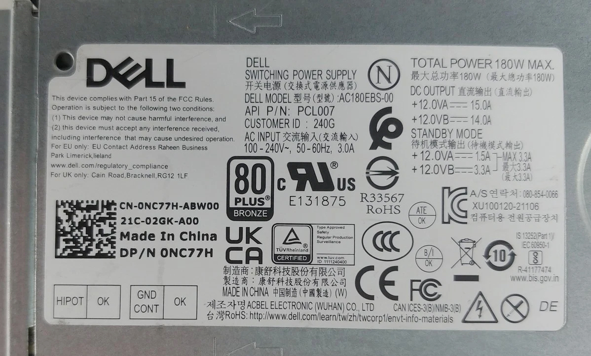 Блок питания Dell PCL007 180W
