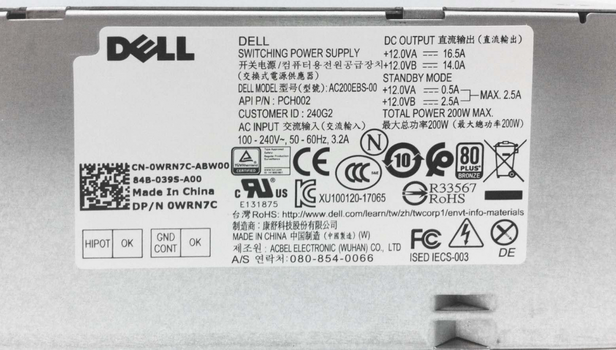 Блок питания Dell 0WRN7C 200W
