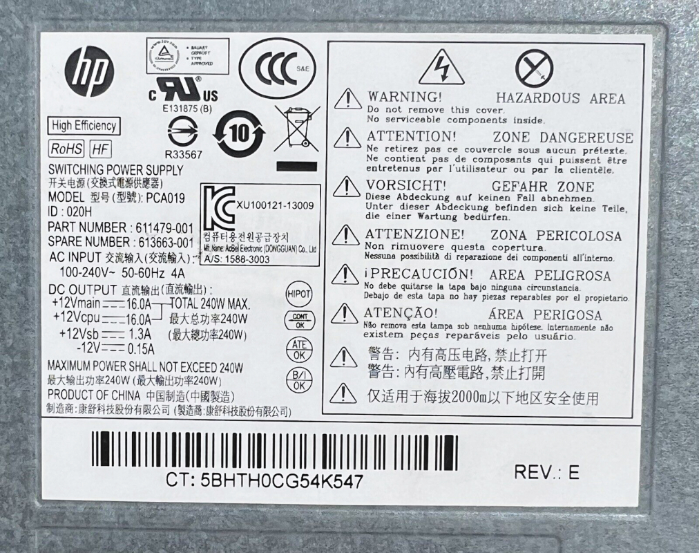 Блок Питания HP PCA019 240W