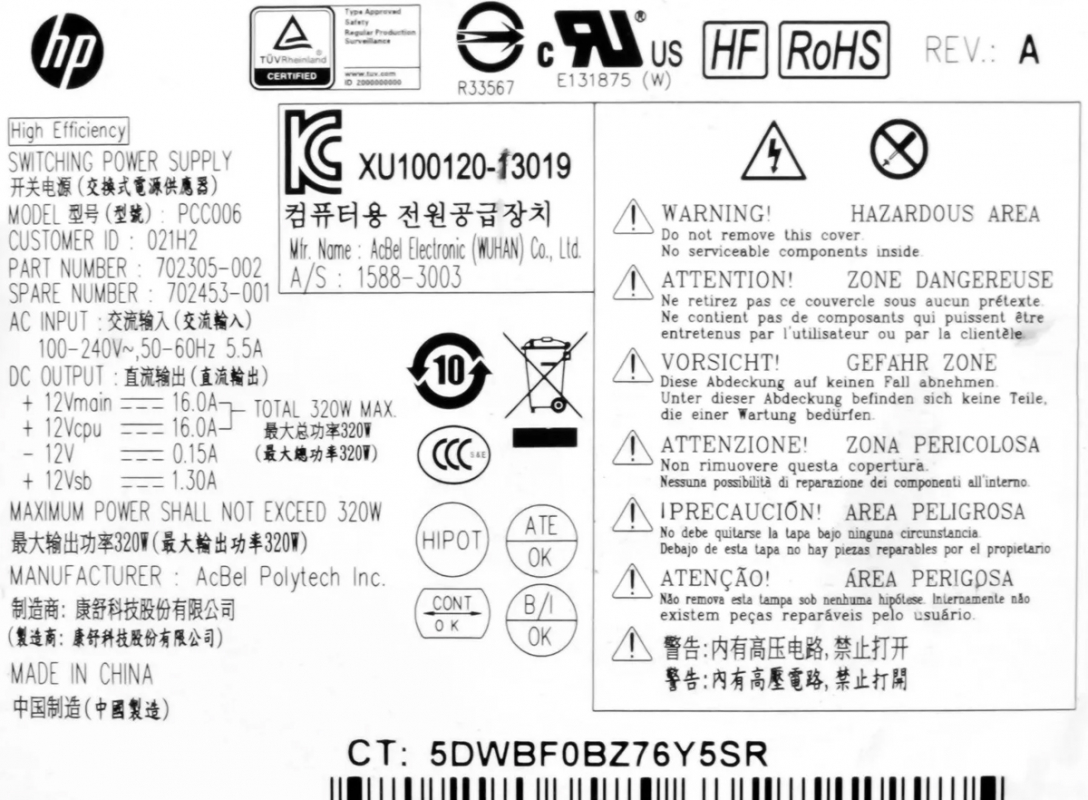 Блок Питания HP PCC006 320W