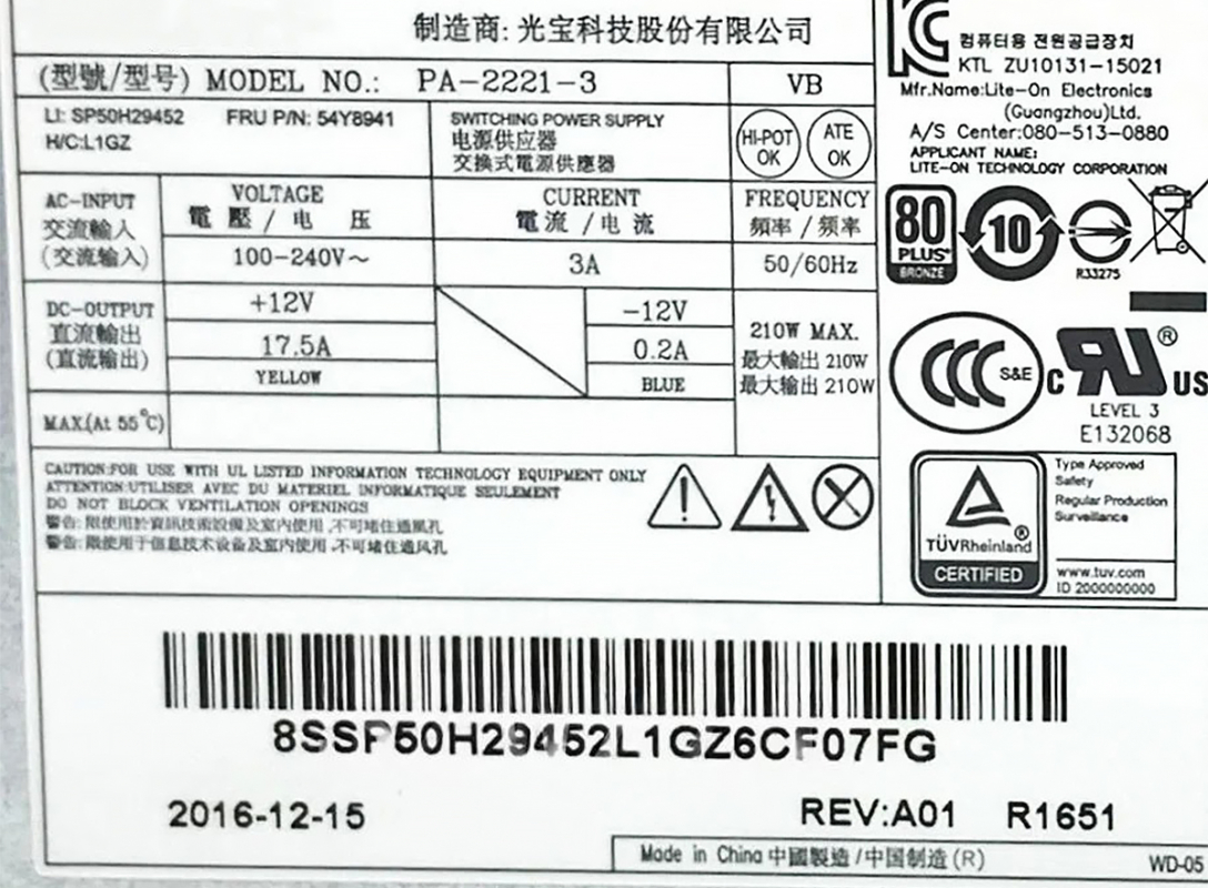Блок Питания IBM SP50H29452 210W