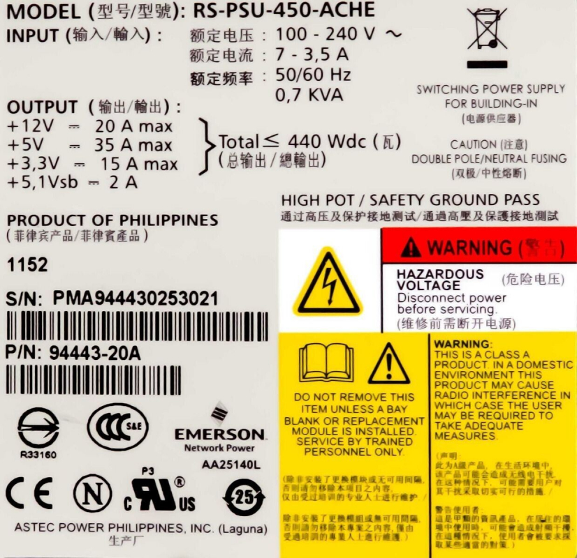 Партномер RS-PSU-450-ACHE