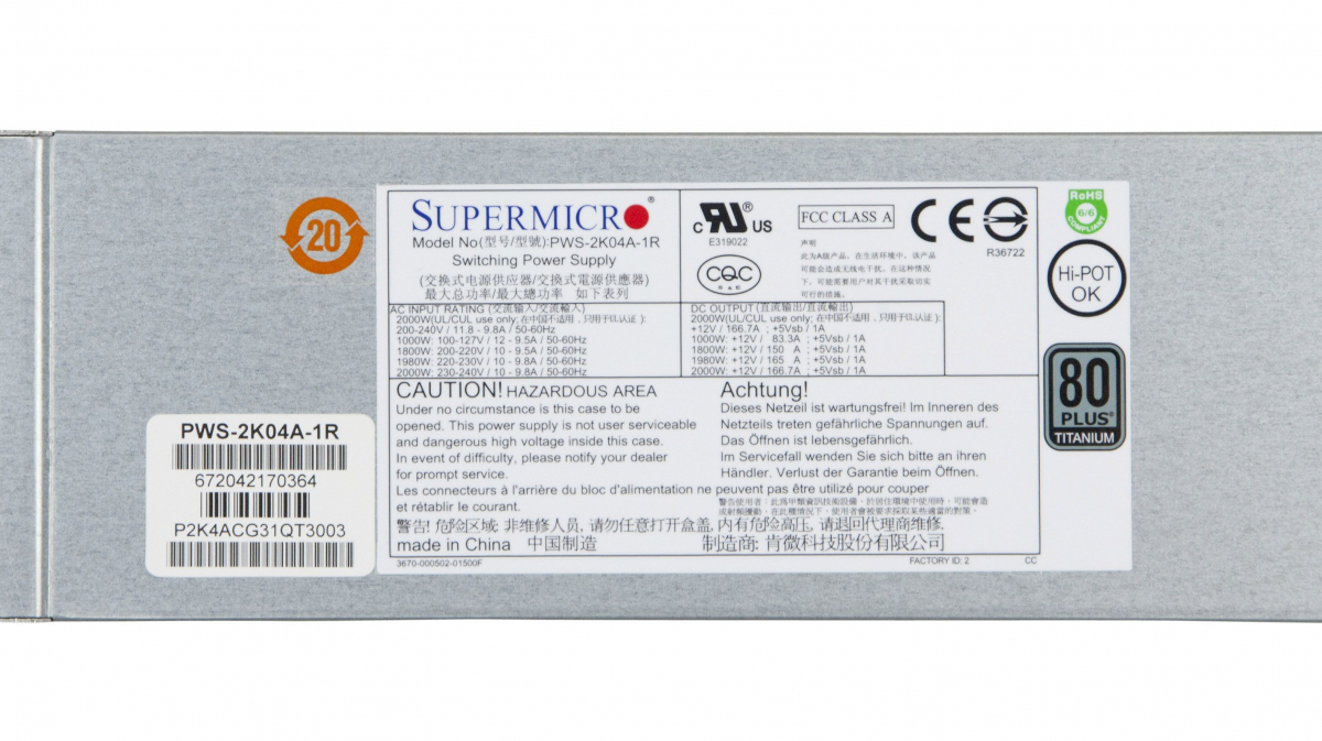 Блок Питания SuperMicro PWS-2K04A-1R 2000W