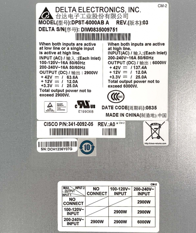 Резервный Блок Питания Cisco DPST-6000AB A 6000W