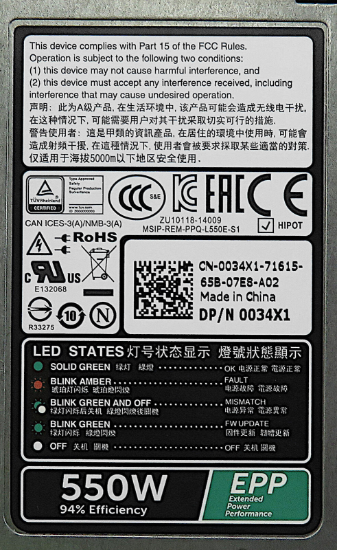 Резервный Блок Питания Dell 034X1 550W
