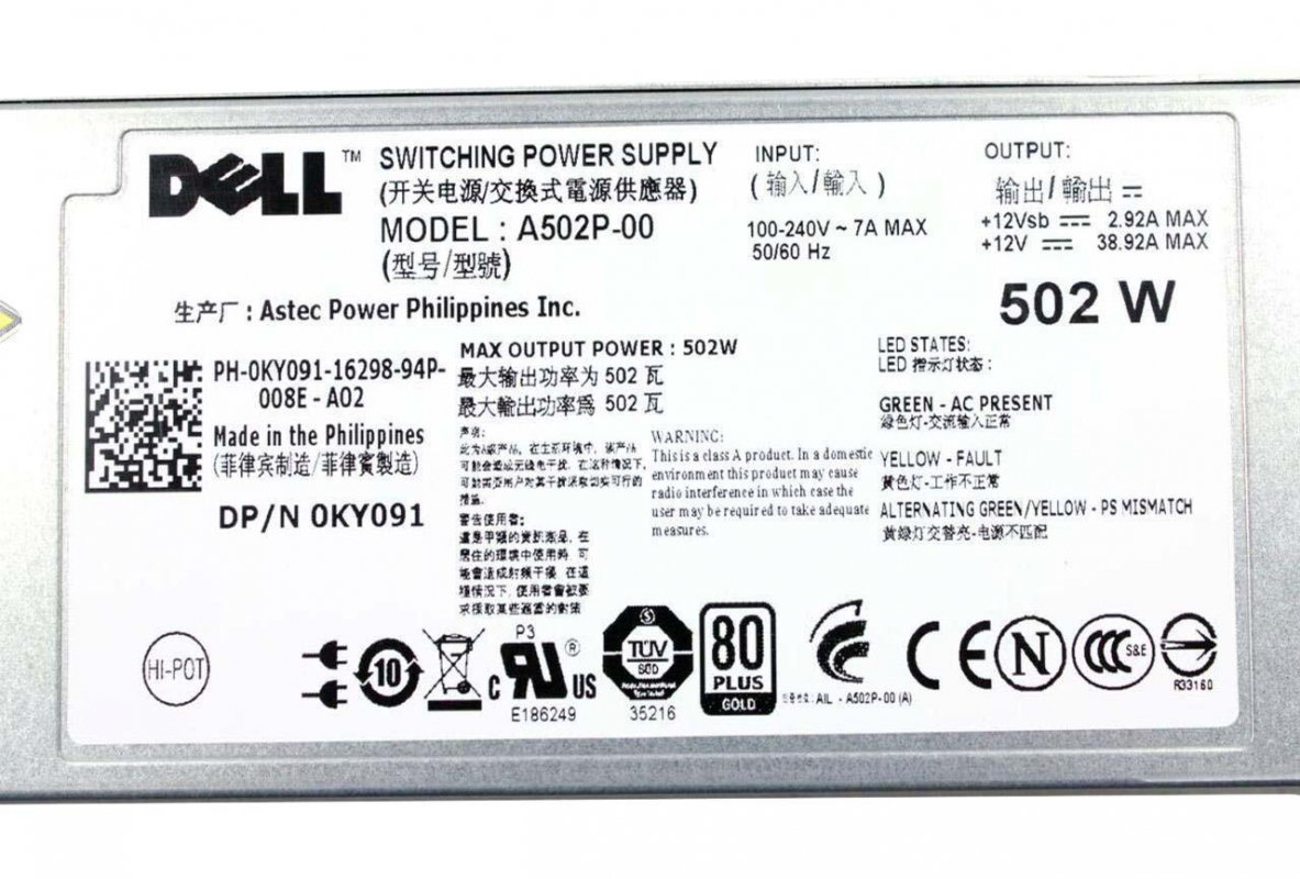 Резервный Блок Питания Dell 0KY091 502W