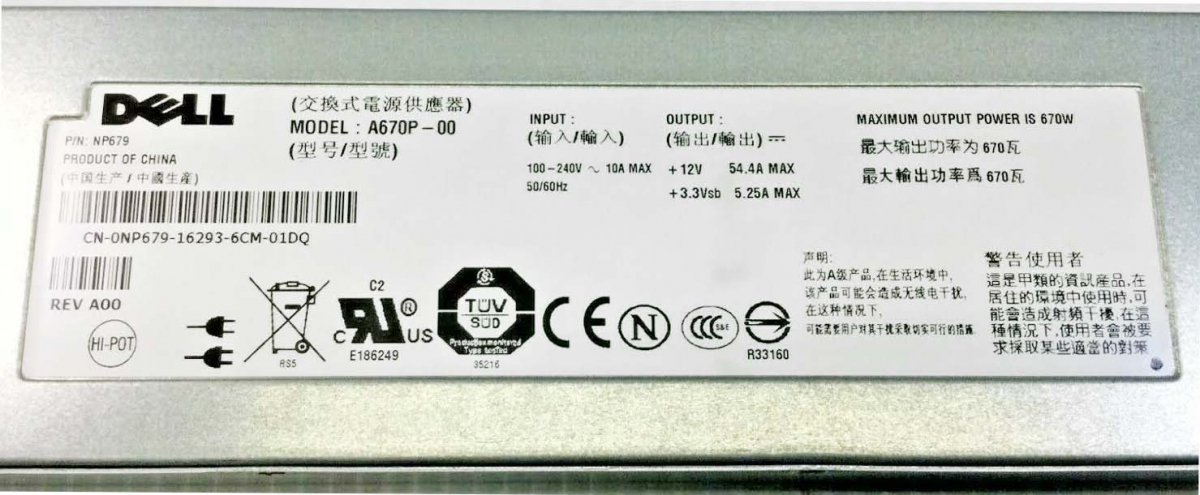 Резервный Блок Питания Dell 0NP679 670W