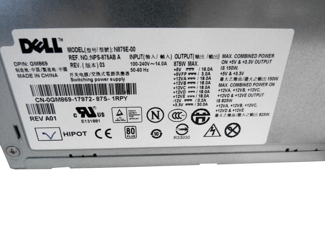 Резервный Блок Питания Dell NPS-875BB A 875W