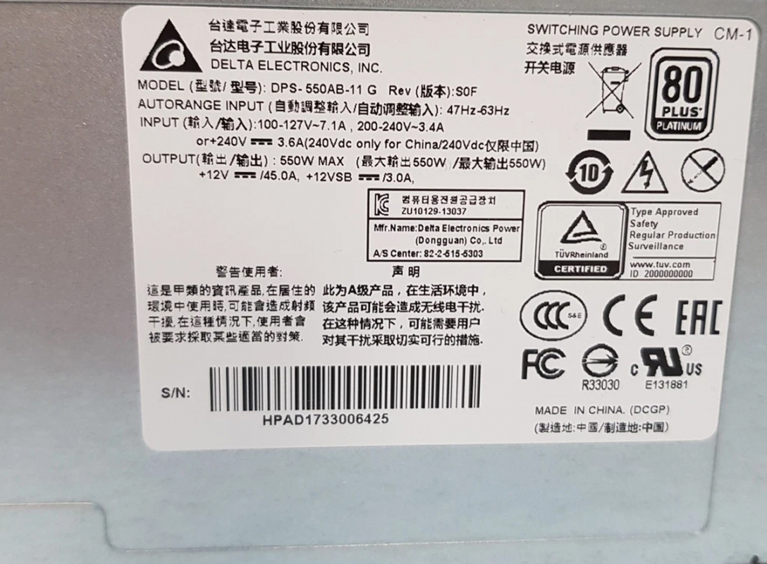 Резервный Блок Питания Delta DPS-550AB-11 G 550W