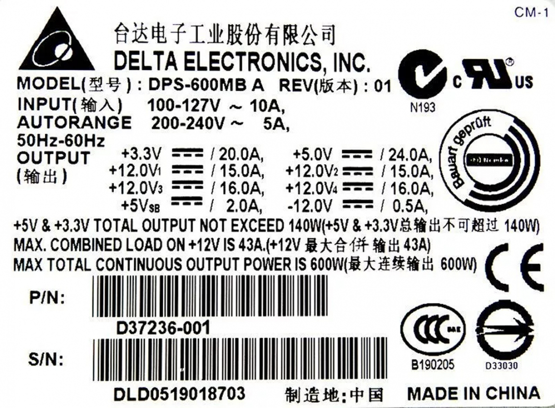 Резервный Блок Питания Intel D37236 600W