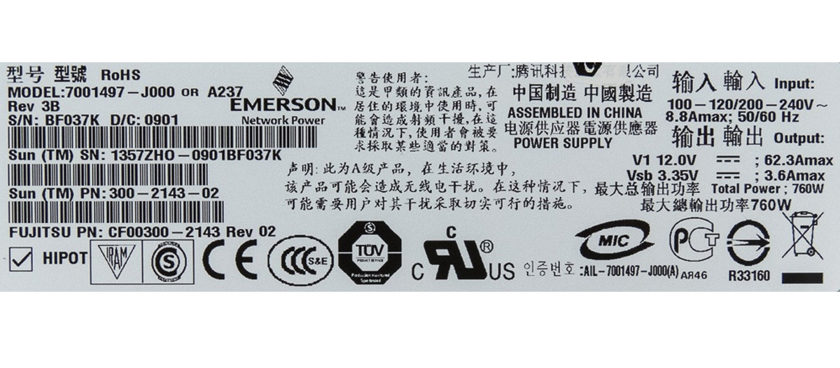 Резервный Блок Питания Sun CF00300-2143 760W