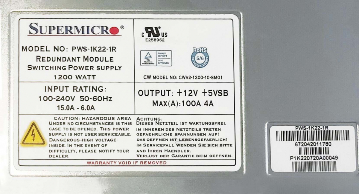 Резервный Блок Питания SuperMicro 672042011780 1200W