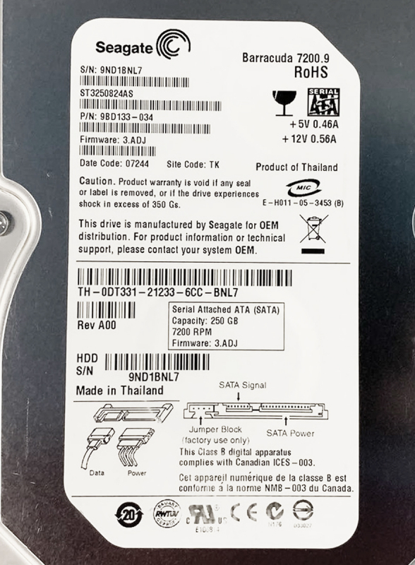 Жесткий диск Dell 0DT331 250Gb SATAII 3,5" HDD