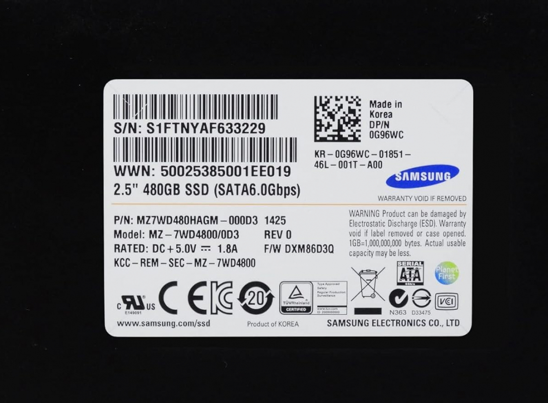 Жесткий диск Dell 0G96WC 480Gb SATAIII 2,5" SSD
