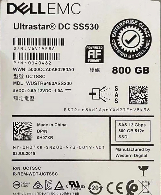 Жесткий диск Dell 0H07XR 800GB SAS 2,5" SSD