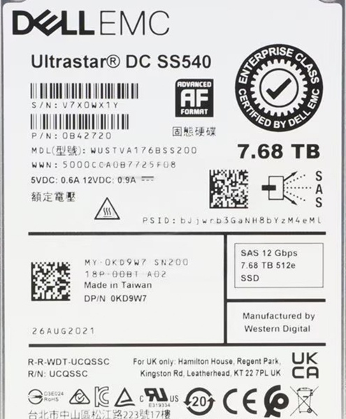 Жесткий диск Dell 0KD9W7 7.68TB SAS 2,5" SSD